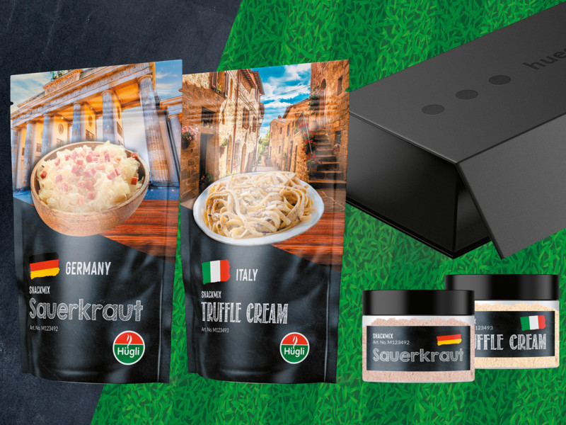 On our culinary pitch, our snack mixes bring the best of a variety of European flavours to the table. Just like the teams on the pitch, each mix contributes its own flair and unique personality. From the tantalising Spanish churros to the delicate Italian truffle cream, and even the hearty German sauerkraut - at Hügli we play along with a variety of condiments from all over Europe.