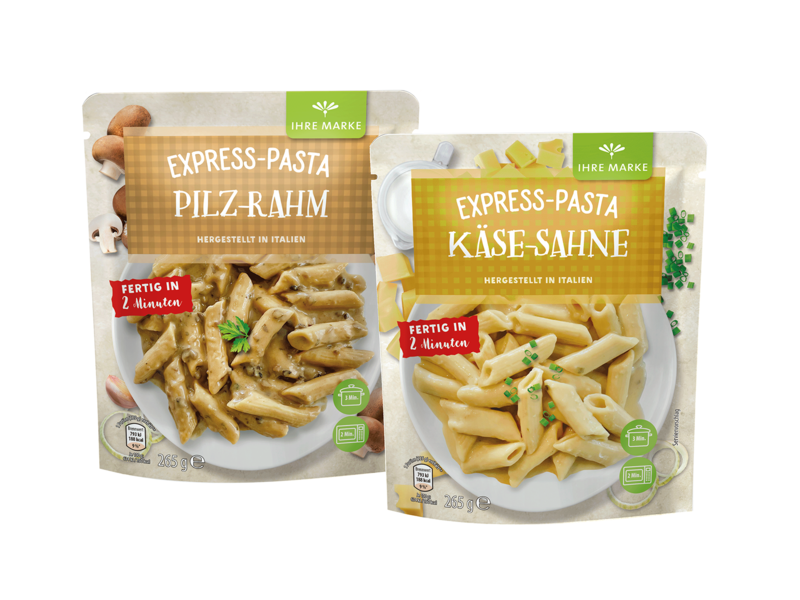 Express Pasta are the innovation in the shelf stable ready meal shelf. They are naturally delicious, without artificial preservatives, colourings and flavourings and contain original Italian pasta for the authentic Italian taste. The product innovation is produced in the north of Italy. They are currently available in the varieties Arrabbiata, Tomato-Mozarella, Tomato Basil, Cheese Cream and Mushroom Cream. In addition, other dishes such as express rice or risotto are also in the Hügli range, in line with the motto: "We offer a quick solution for every taste when spontaneous hunger strikes."