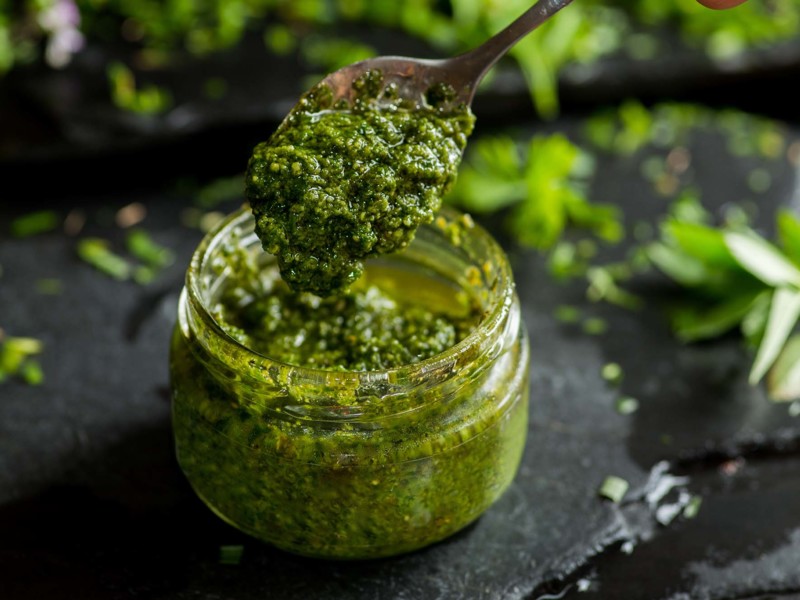 New cultivation methods: For the production of pestos, we at Hügli use basil plants from vertical cultivation that our partners cannot sell to the trade for reasons of beauty and that would otherwise end up in the rubbish.